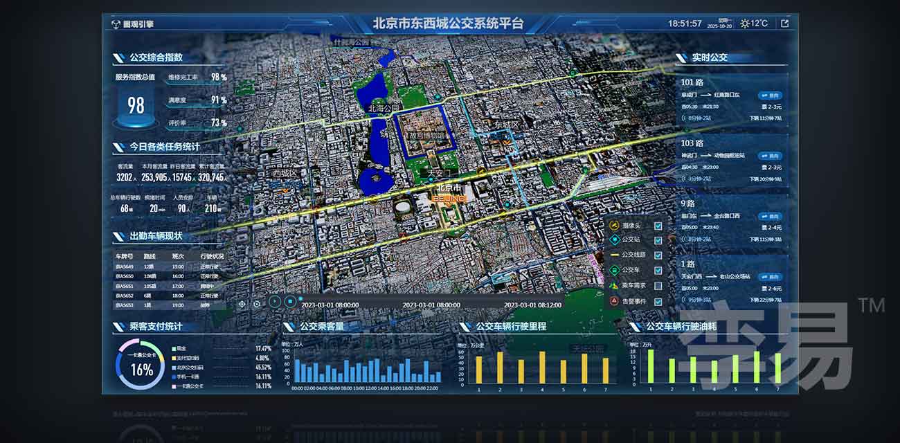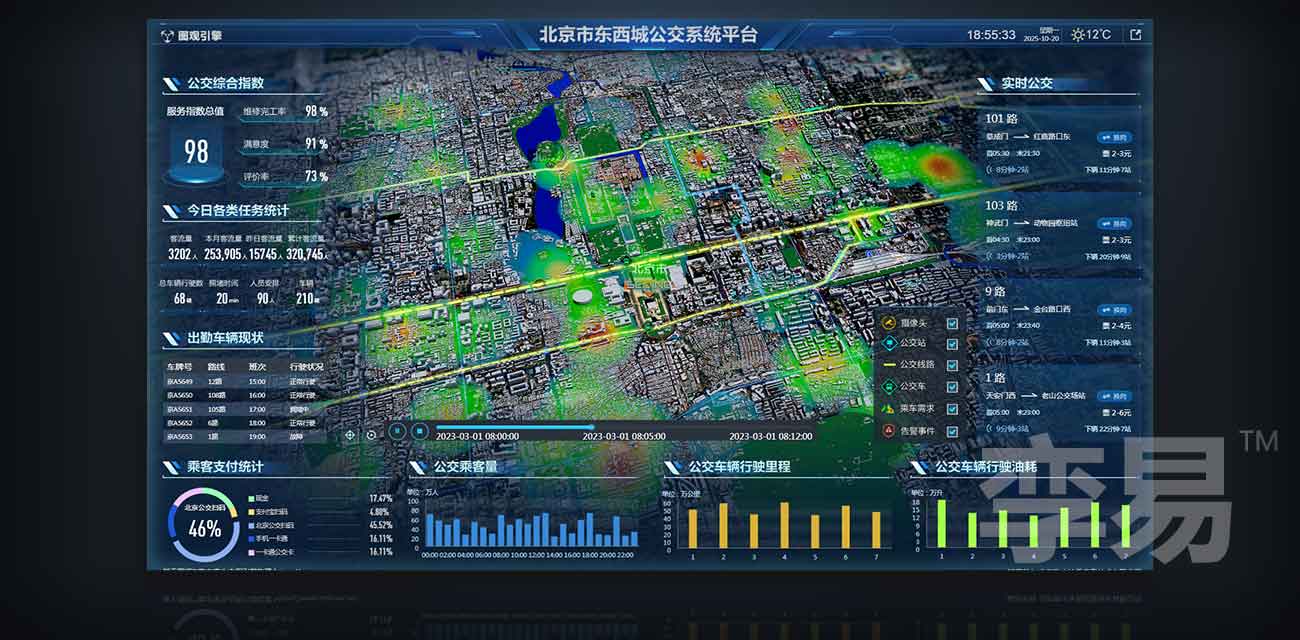 系统与现有公交人力资源管理系统、车辆技术管理系统、信息资源平台、运营调度系统等业务系统数据深度集成,支持从公交车辆、司乘人员、运行线路、站点场站管理等多个维度进行日常路网运行监测与协调管理。