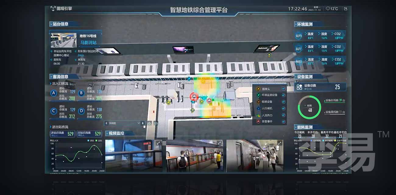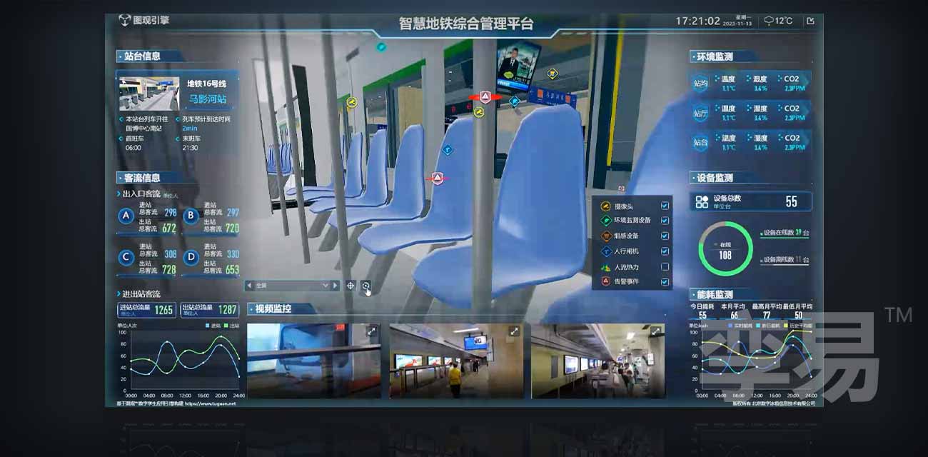 基于地铁数字孪生场景,真实复现地铁站点内部空间状态 及