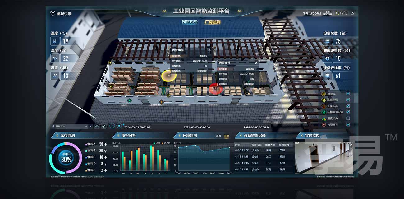 行业孪生体对象的三维模型、显示样式定义;行业图层;行业图表;行业卡片等丰富内容,支持基于现有行业插件模板快速定义自有行业对象和分析,快速让您的系统对齐行业最高水平!
